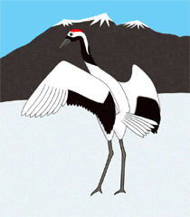 寒空の下、氷原の上を歩くタンチョウヅルです。